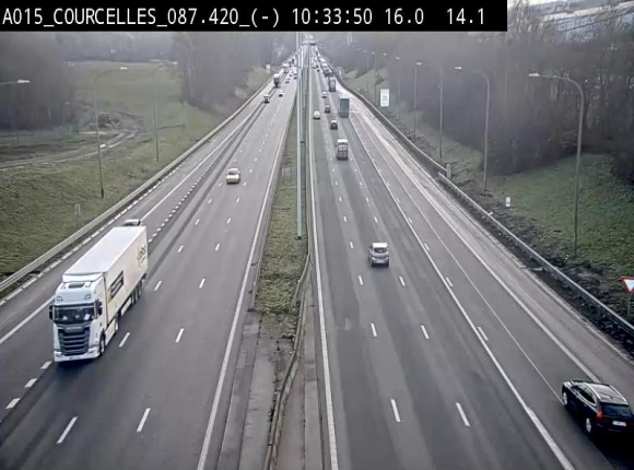 Verkehrskamera Courcelles, in der Nähe von Charleroi, auf E42-A15 (Belgien), auf der Suche nach Mons (DE)