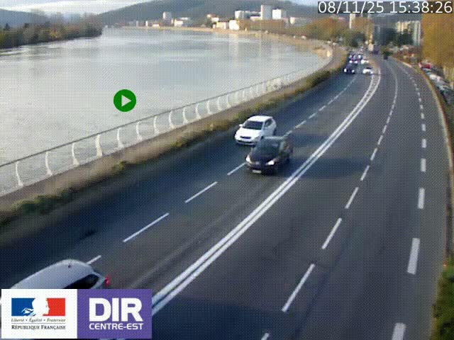 <h2>Webcam sur le quai Parjot à Vienne, aux Portes de Lyon, sur la Nationale 7, à la jonction avec le boulevard du Rhône-nord (D1407), caméra orientée vers Lyon</h2>