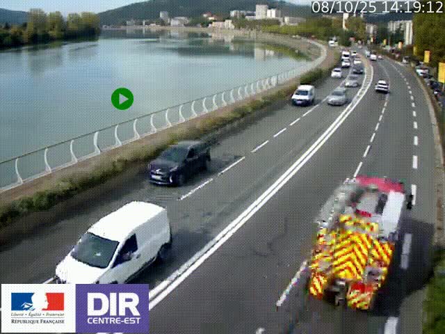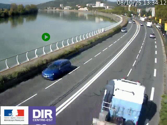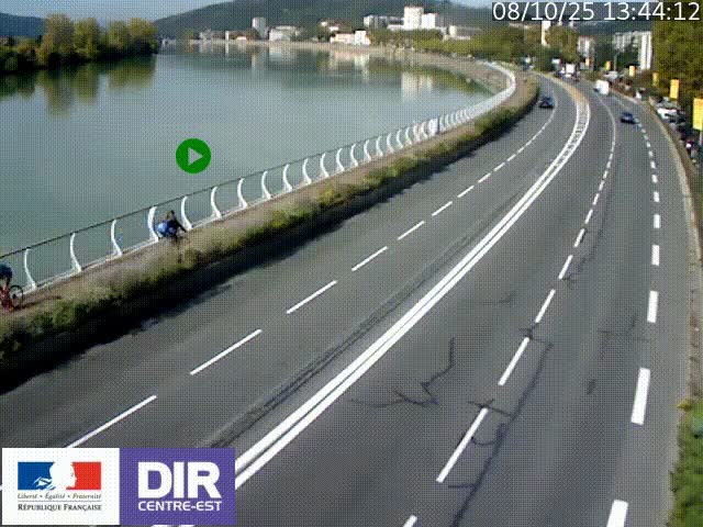 <h2>Webcam sur le quai Parjot à Vienne, aux Portes de Lyon, sur la Nationale 7, à la jonction avec le boulevard du Rhône-nord (D1407), caméra orientée vers Lyon</h2>