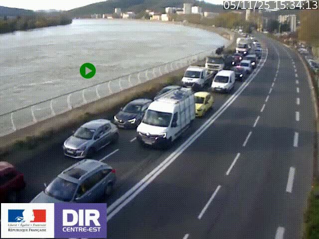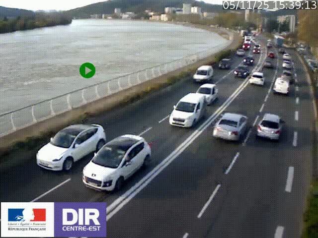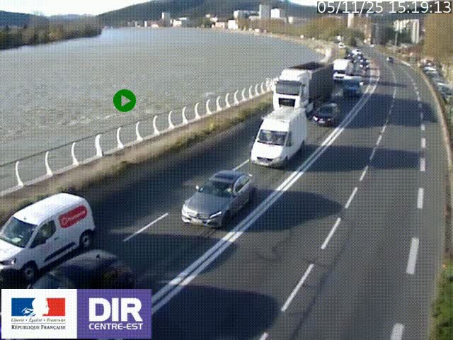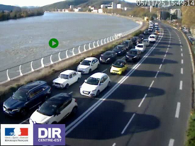 <h2>Webcam sur le quai Parjot à Vienne, aux Portes de Lyon, sur la Nationale 7, à la jonction avec le boulevard du Rhône-nord (D1407), caméra orientée vers Lyon</h2>
