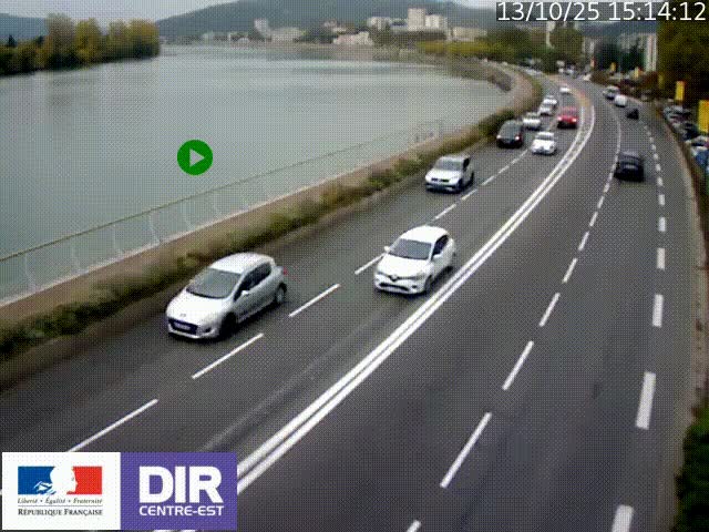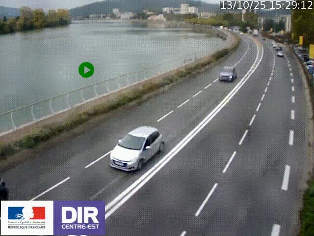<h2>Webcam sur le quai Parjot à Vienne, aux Portes de Lyon, sur la Nationale 7, à la jonction avec le boulevard du Rhône-nord (D1407), caméra orientée vers Lyon</h2>