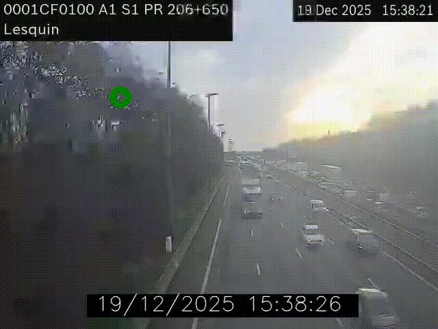 Traffic camera Lesquin, near Lille, on A1 - France, looking to Lille