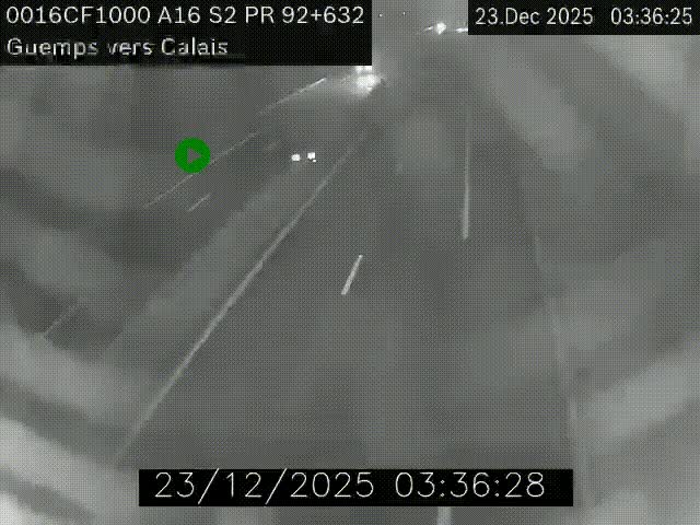 Traffic camera Guemps, near Calais, on A16 - France, looking to Calais