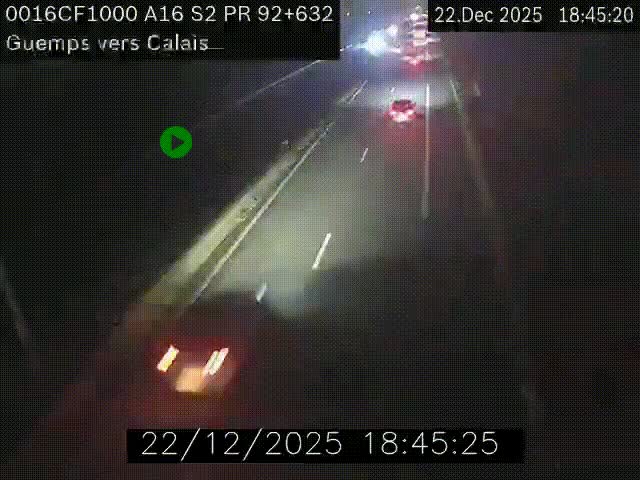 Traffic camera Guemps, near Calais, on A16 - France, looking to Calais
