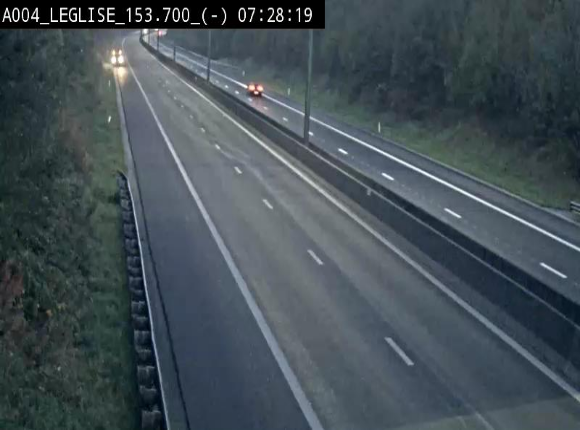 <h2>Webcam autoroute A4 (E411-E25) à Léglise, avant la jonction avec la N40. Vue orientée vers Bruxelles</h2>