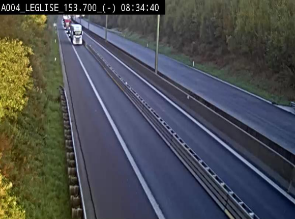 <h2>Webcam autoroute A4 (E411-E25) à Léglise, avant la jonction avec la N40. Vue orientée vers Bruxelles</h2>