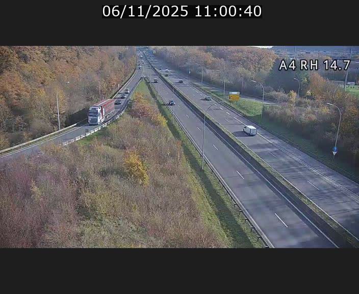 Te encuentras con esta cámara web en KP 14.70 en A4 (Luxemburgo) cuando vienes de Pétange.