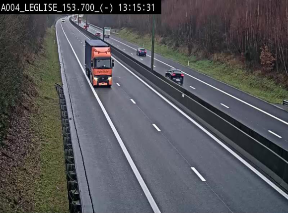 Webcam autoroute A4 (E411-E25) à Léglise, avant la jonction avec la N40. Vue orientée vers Bruxelles
