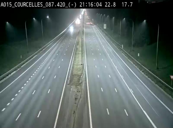 Cette caméra, orientée vers Mons, La Louvière, Tournai se trouve à proximité de Courcelles, en périphérie de Charleroi.