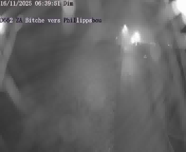 Caméra de trafic sur D662 (France) à Bitche, orientée vers Phillippsbourg, permettant d’évaluer fluidité, incidents et densité automobile.