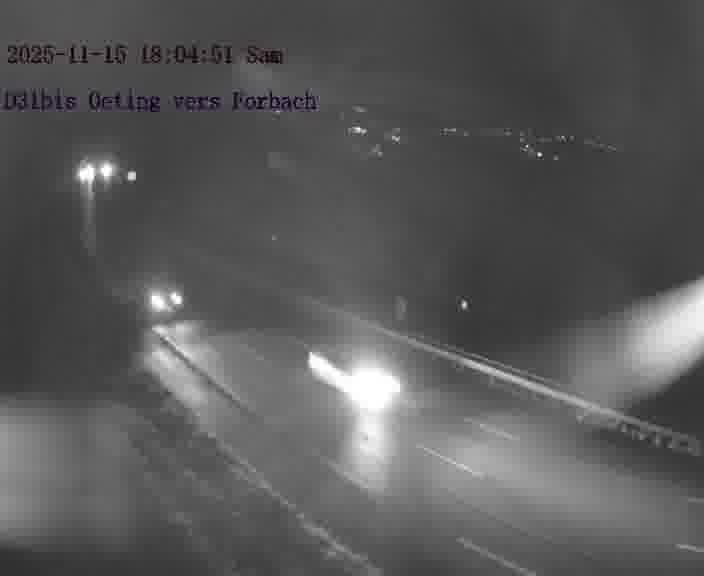 Caméra routière située sur D31bis (France) à Oeting, orientée vers Forbach, surveillant en continu la circulation locale et régionale.