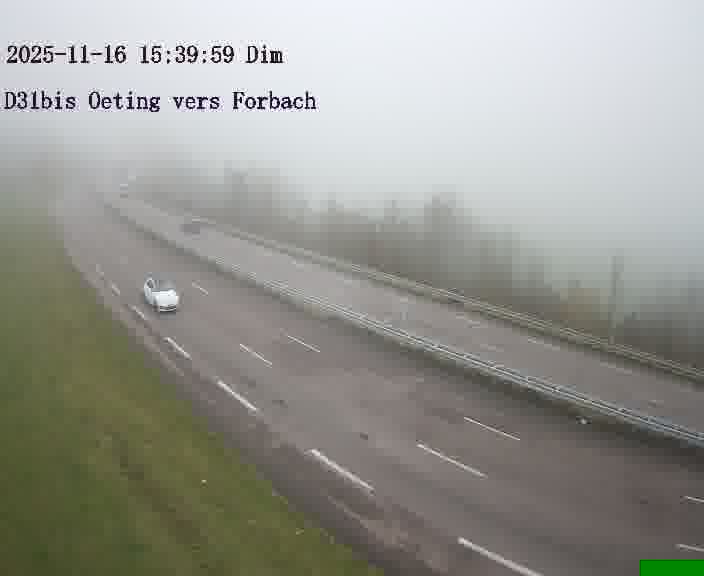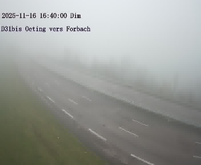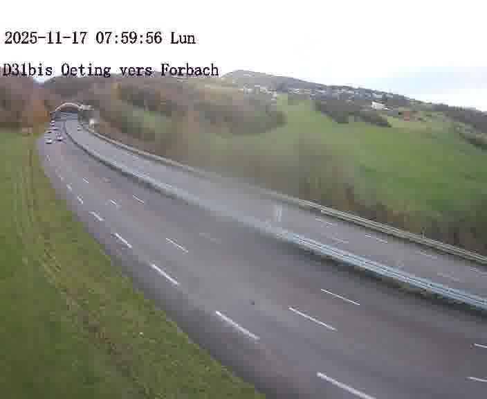 Caméra routière située sur D31bis (France) à Oeting, orientée vers Forbach, surveillant en continu la circulation locale et régionale.