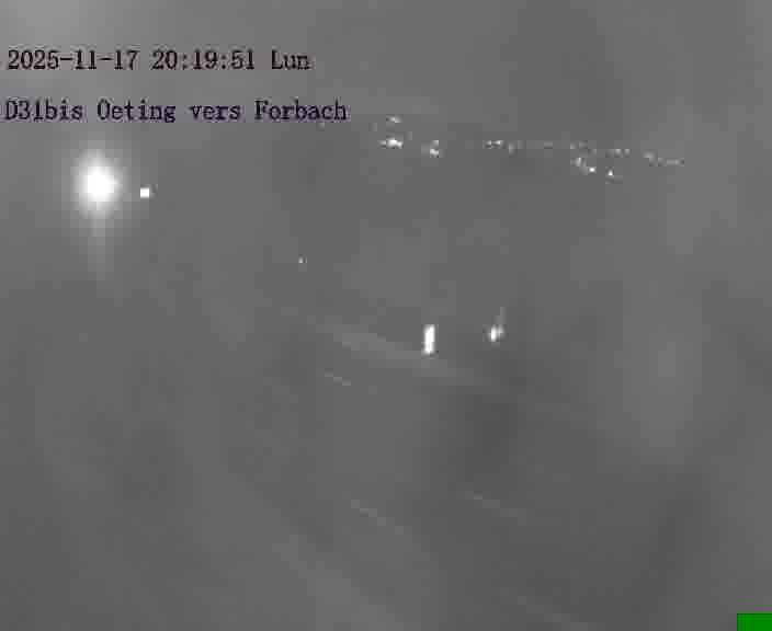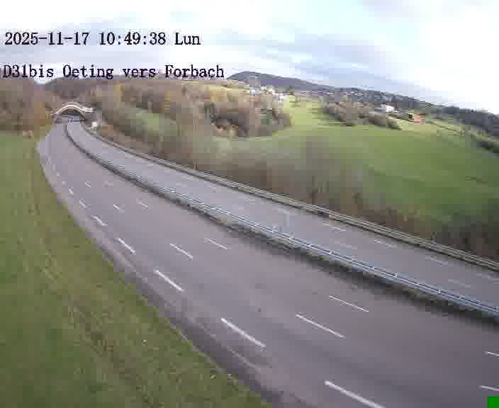 Caméra routière située sur D31bis (France) à Oeting, orientée vers Forbach, surveillant en continu la circulation locale et régionale.