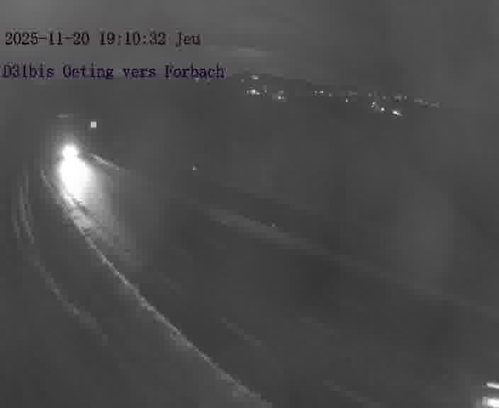 Caméra routière située sur D31bis (France) à Oeting, orientée vers Forbach, surveillant en continu la circulation locale et régionale.