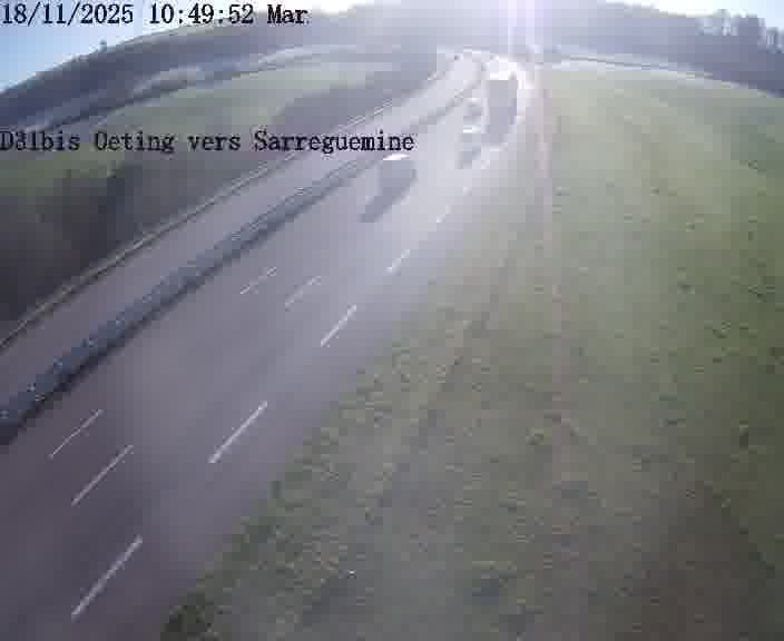Webcam installée le long de D31bis (France) à Oeting, pointée vers Sarreguemines, utile pour suivre précisément les conditions de trafic.