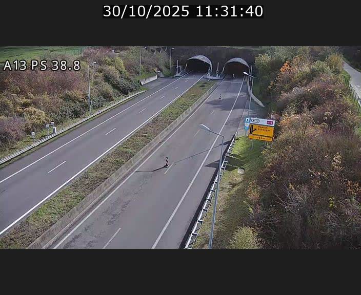 Webcam autoroute A13 à l'entrée ouest du tunnel Markusbierg à Schengen. Vue orientée vers Mondorf-les-Bains