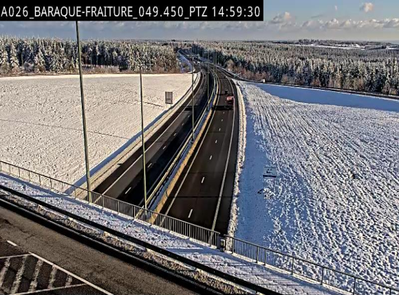 Uw zult deze webcam kunnen zien op KP 49.40 op E25-A26 (België) als u komt van uit Bastogne.