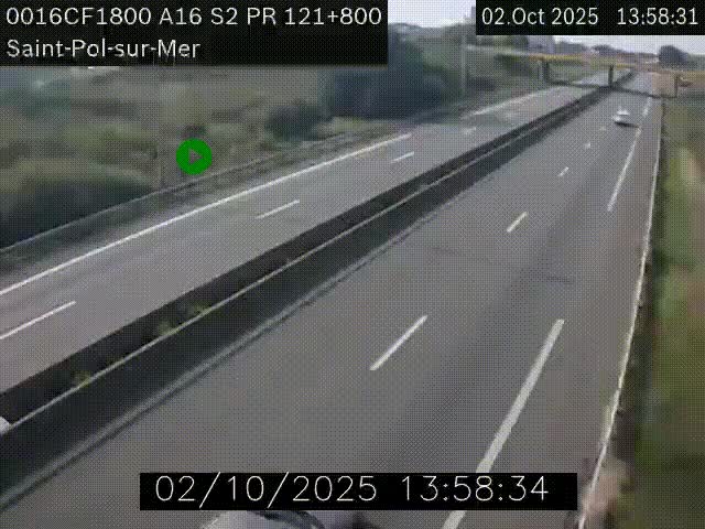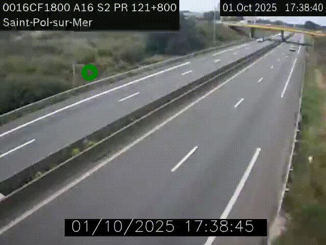 Uw zult deze webcam kunnen zien op KP 121.80 op A16 (Frankrijk) als u komt van uit Bray-Dunes.