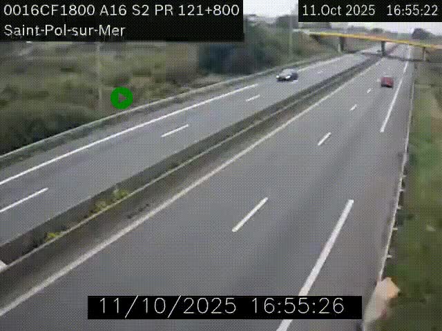 Uw zult deze webcam kunnen zien op KP 121.80 op A16 (Frankrijk) als u komt van uit Bray-Dunes.