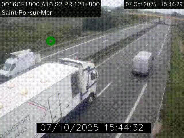 Uw zult deze webcam kunnen zien op KP 121.80 op A16 (Frankrijk) als u komt van uit Bray-Dunes.