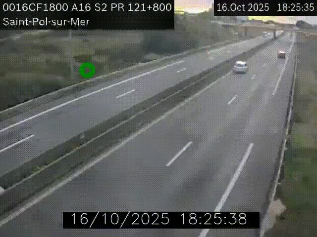 <h2>Webcam autoroute A16 à proximité de Dunkerque, à hauteur de la sortie Saint-Pol-sur-Mer. Vue orientée vers Calais</h2>