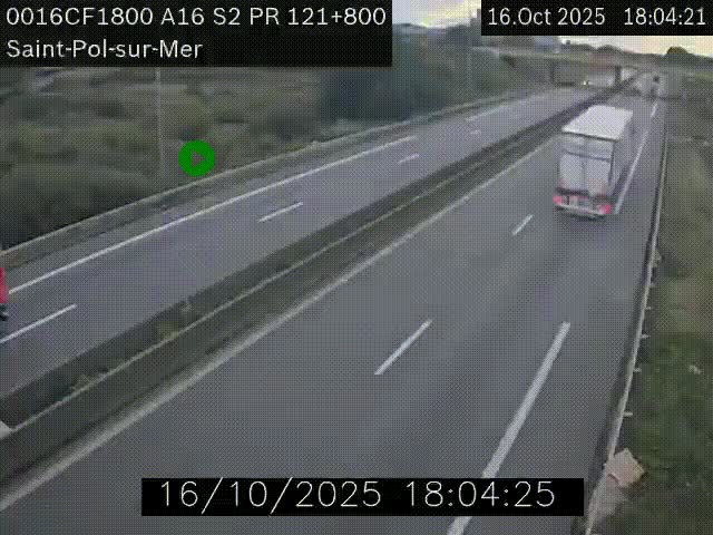 Uw zult deze webcam kunnen zien op KP 121.80 op A16 (Frankrijk) als u komt van uit Bray-Dunes.