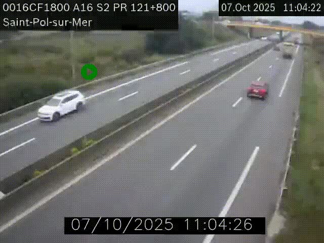Uw zult deze webcam kunnen zien op KP 121.80 op A16 (Frankrijk) als u komt van uit Bray-Dunes.